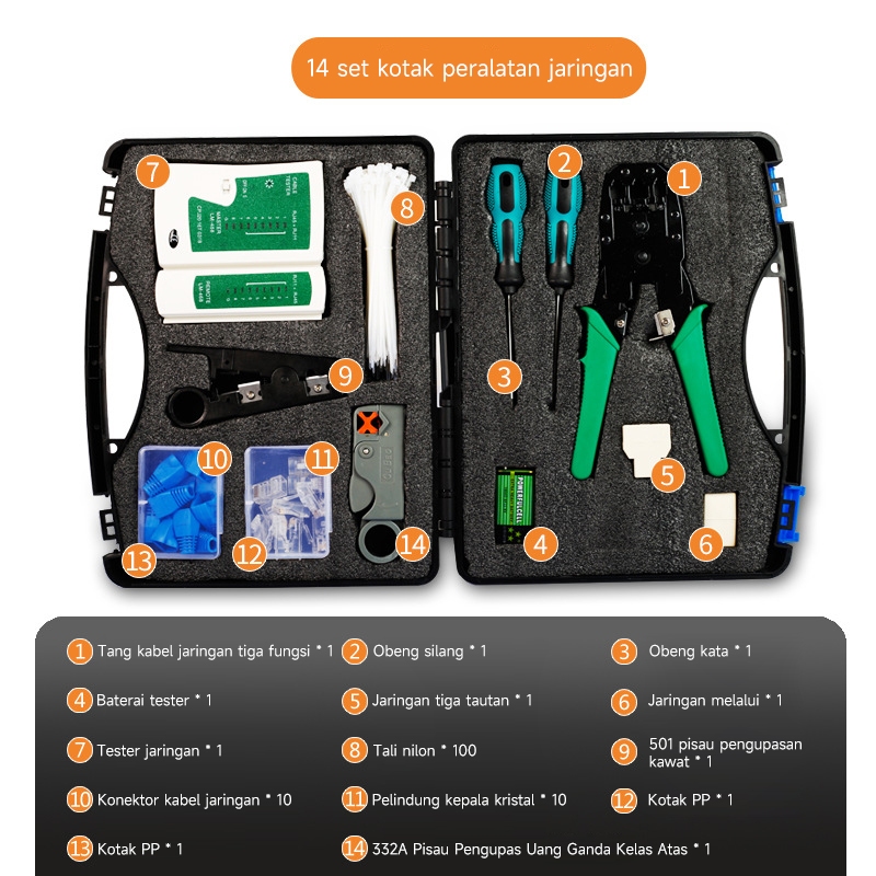 12/14 In 1 Toolkit Perbaikan Jaringan Network Cable Repair Tool Kit Set Alat ServisJaringan Internet Komplit Set Paket T