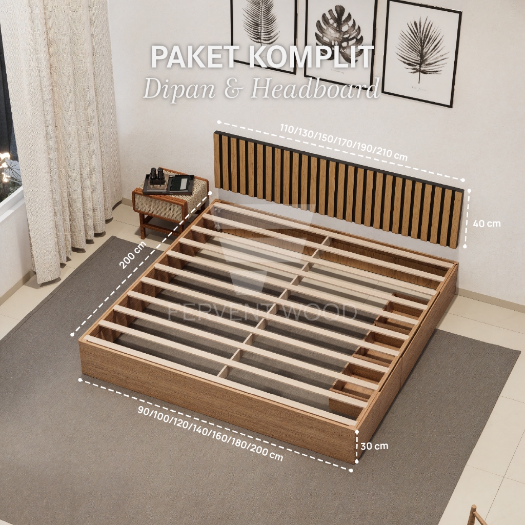 FERVENT WOOD Dipan Laci Kokoh Tempat Tidur Kasur Divan Kayu Solid Minimalis P3m45angan Mudah Kokoh
