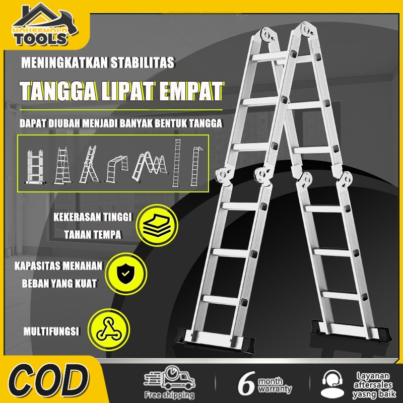 Tangga Lipat Aluminium Teleskopik 3.7m/4.7m/5.8m meter Tangga Aluminium Lipat Empat Tangga Lipat Multifungsi