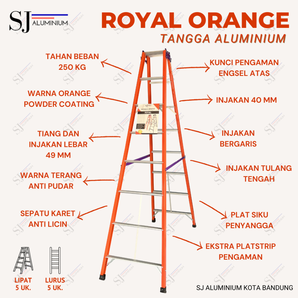 ROYAL ORANGE - Tangga Aluminium Lipat Orange Jumbo Aluminium Ladder Multifungsi - Tahan Beban 250 KG