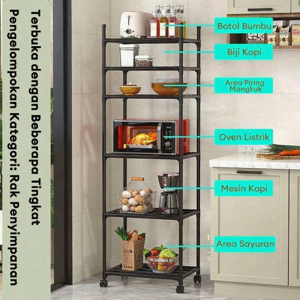 [PROMO] Rak Oven Microwave Besi Rak Penyimpanan Susun Rak Oven Rak 6 susun Rak Kamar Mandi Beroda Serbaguna Kamar Ra