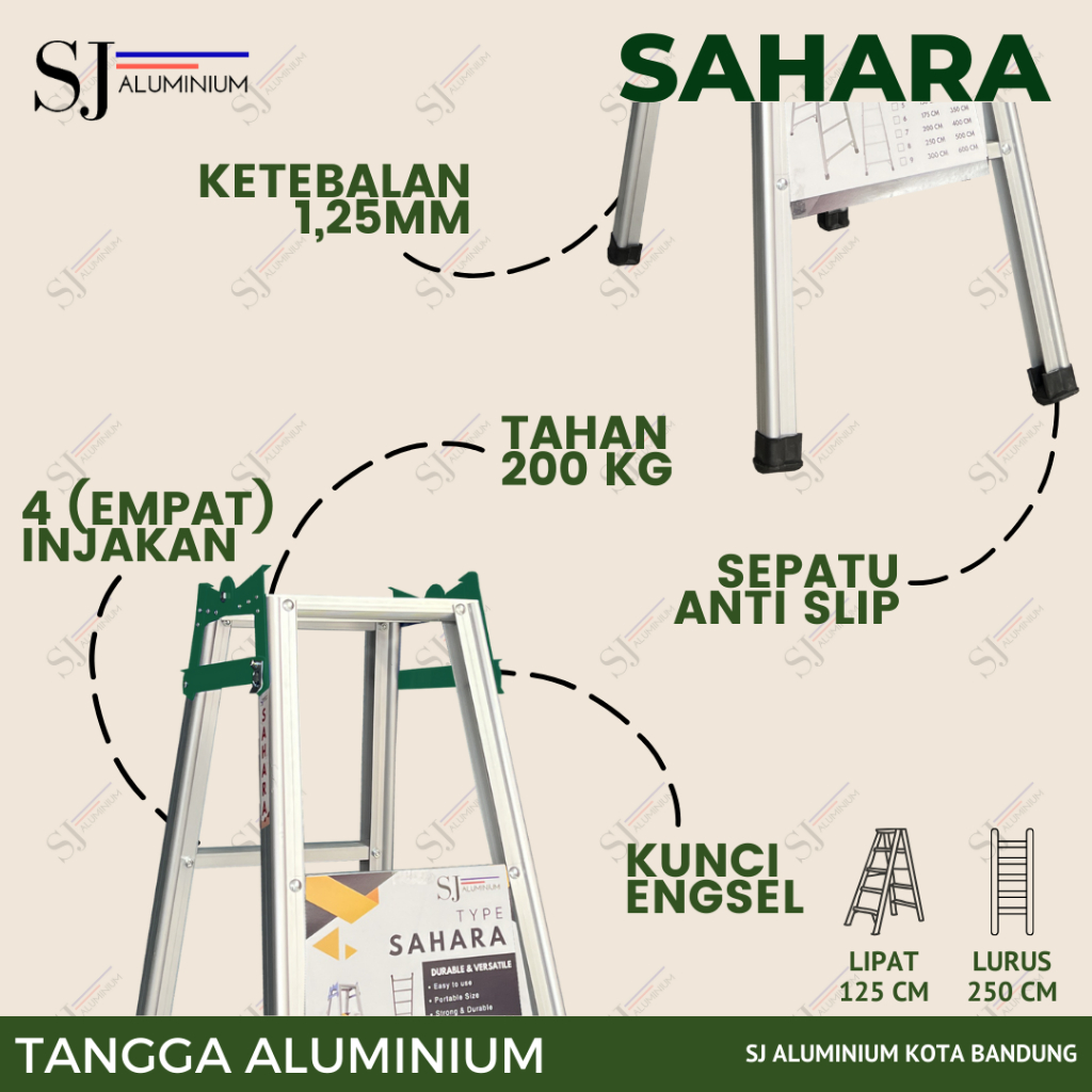SAHARA - Tangga Aluminium Lipat Multifungsi / Aluminium Ladder - Hijau 1,25 Meter / 125 CM
