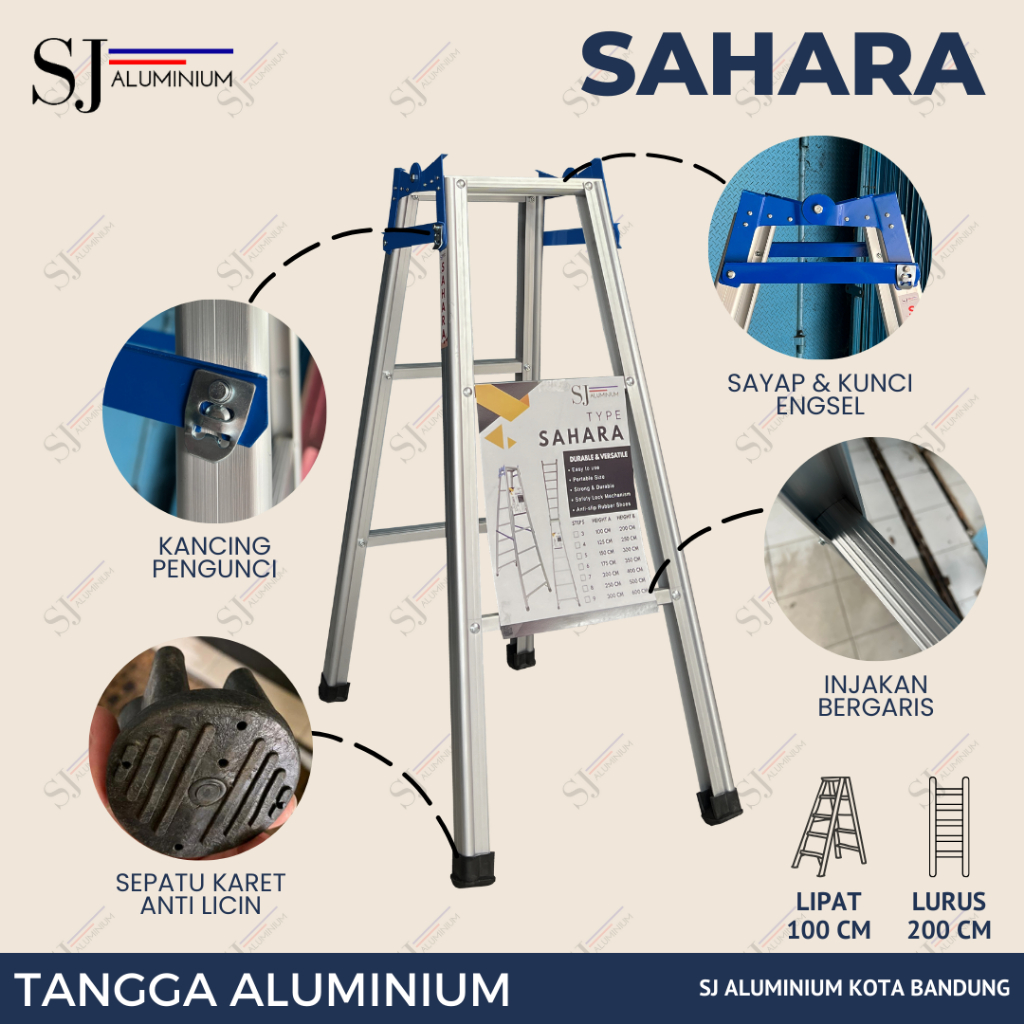 SAHARA - Tangga Aluminium Lipat Multifungsi / Aluminium Ladder - Biru 1 Meter / 100 CM