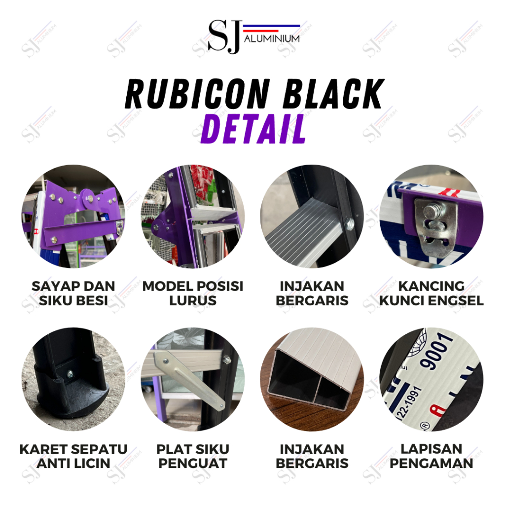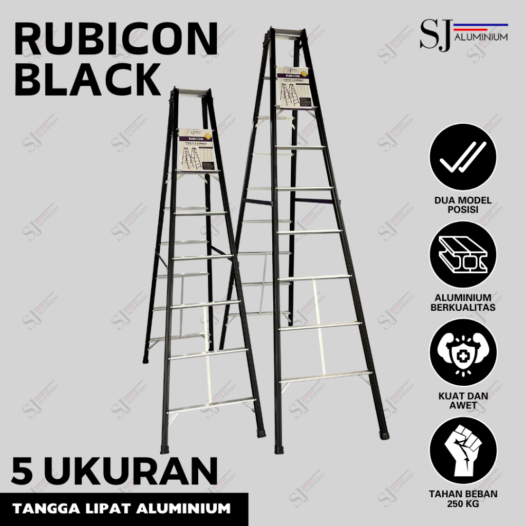SJALUMINIUM - Tangga Aluminium Lipat / Tangga Lipat Multifungsi Jumbo Premium Rubicon BLACK - Tahan Beban 250KG