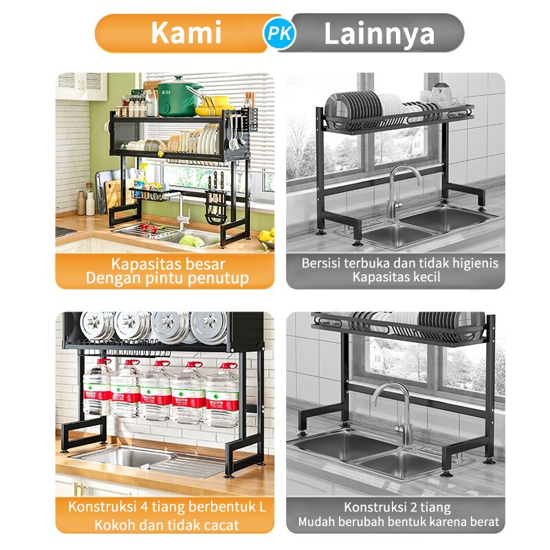 [PROMO] Wastafel Dapur Rak Wastafel Meja Penyimpanan Piring Penyimpanan Piring Cuci Multifungsi Taruh Wastafel Wastaf