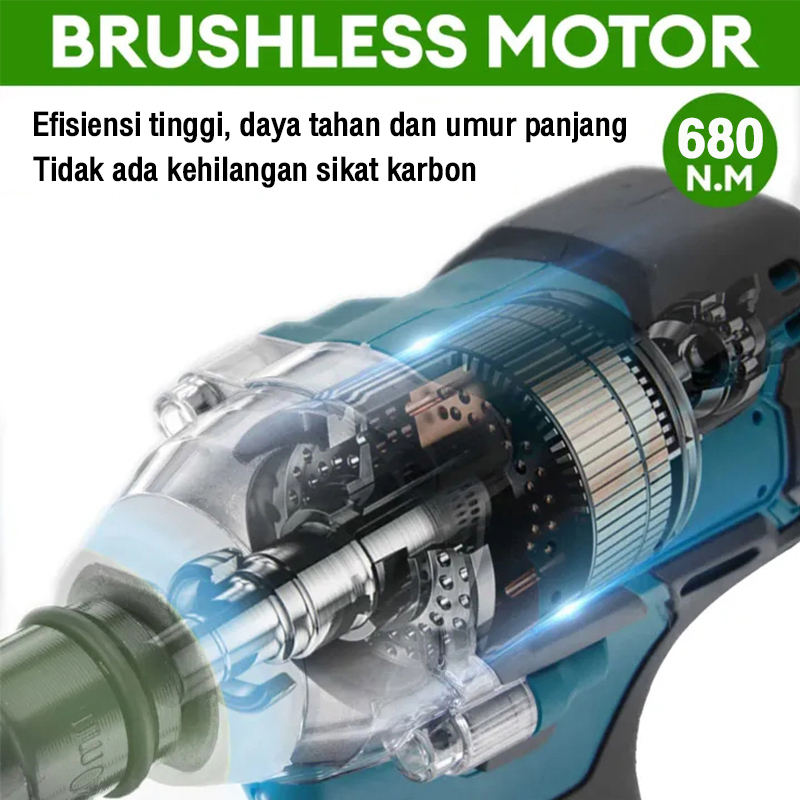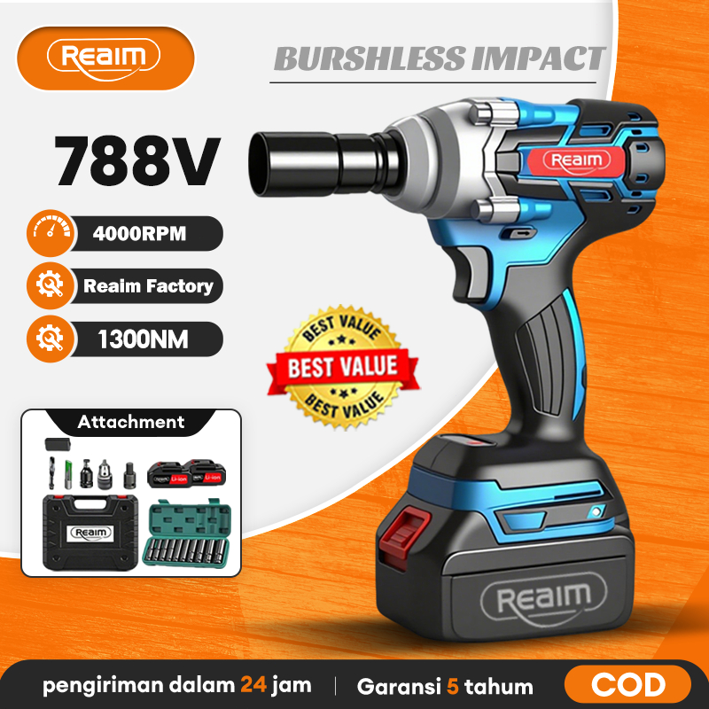 REAIM Cordless Impact Wrench Brushless 388V 1300N/M Mobil Impact Baterai Mesin Bor Untuk Baut Mobil 2 Baterai Impek Bate