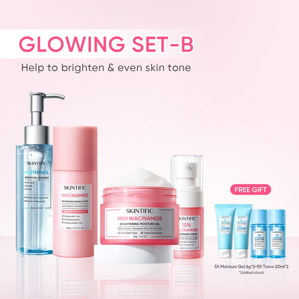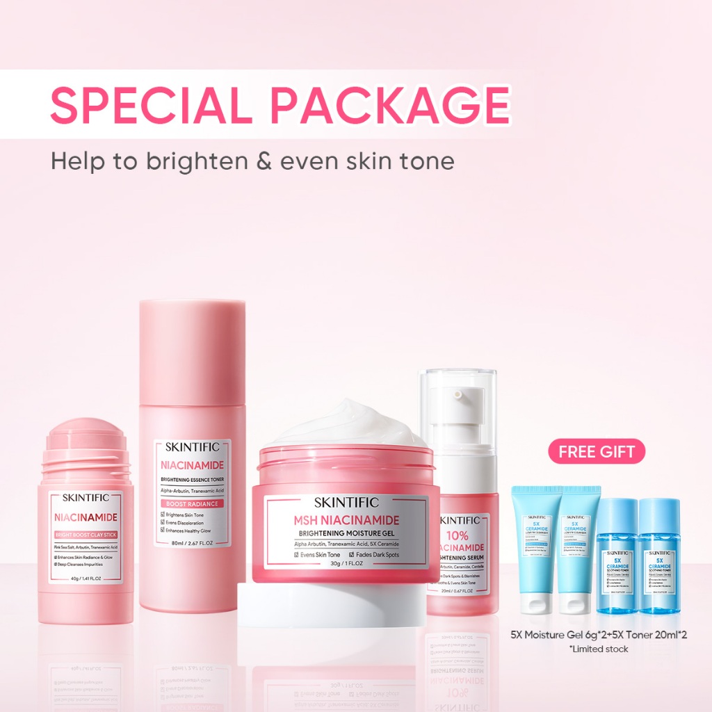 [8PCS!! SPECIAL PACKAGE] SKINTIFIC Glow Expert Set |Serum Wajah Moisturizer Gel Toner Clay Mask Day Night Cream Barrier