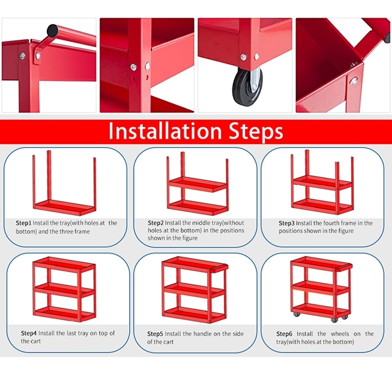 [PROMO] Reaim Bengkel Rak 3 Susun Perkakas Trolly Trolley Kotak Peralatan Troli Dengan Peralatan Penyimpanan Troli B
