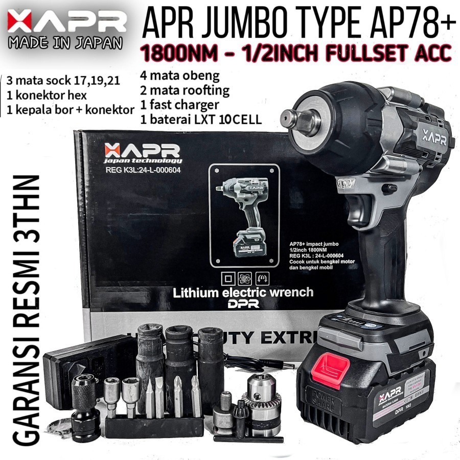 100 PERSEN ORI BOR IMPACT WRENCH 1/2" TORSI 1800NM APR AP78+ BATERAI UPGRADE 10CELL GARANSI 5 TAHUN