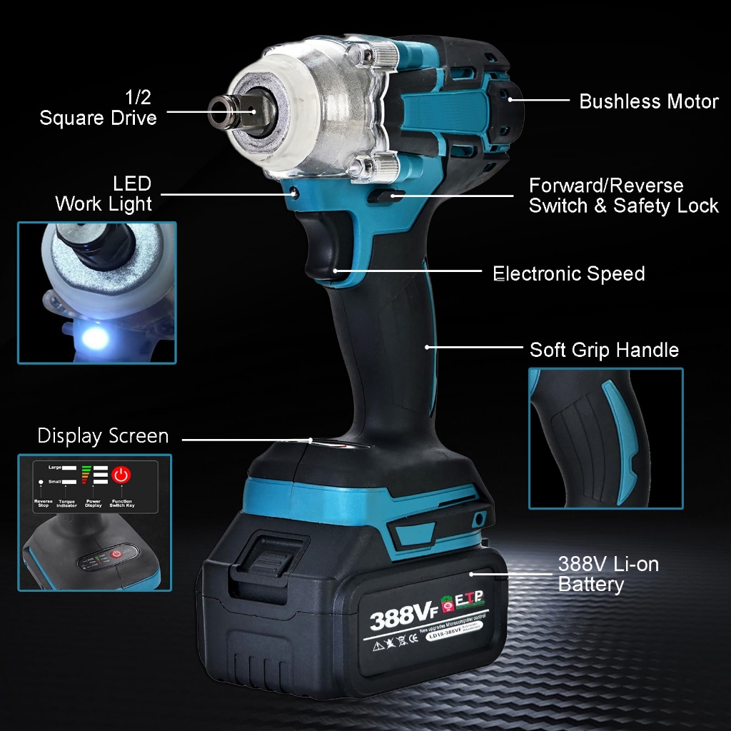 Impact Wrench 588V 680N/M Cordless Brushless Mobil Impact 2baterai impek baterai torsi besar Untuk Baut Mobil Listrik Bo