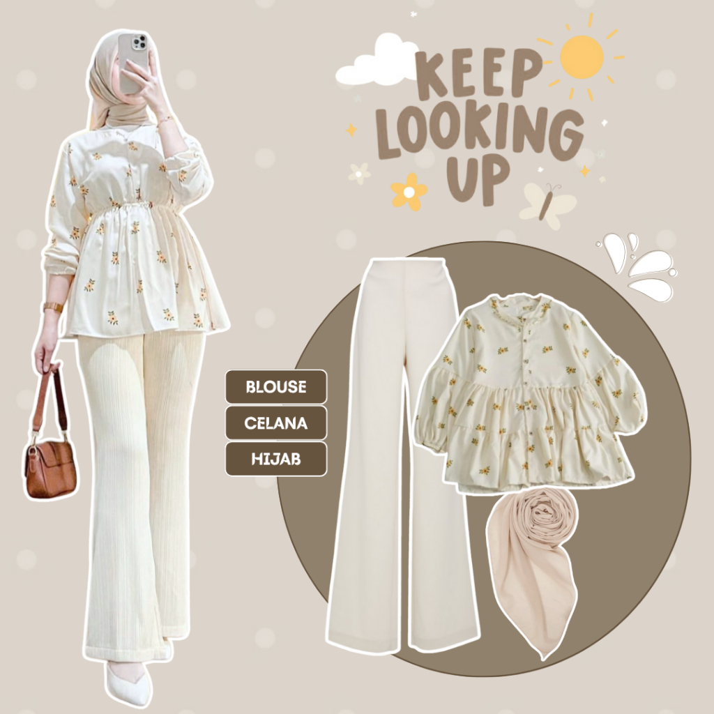 Baju Satu Set Wanita Korean Style Blouse + Cutbray + Jilbab Bella Square One Set Kekinian - LP144