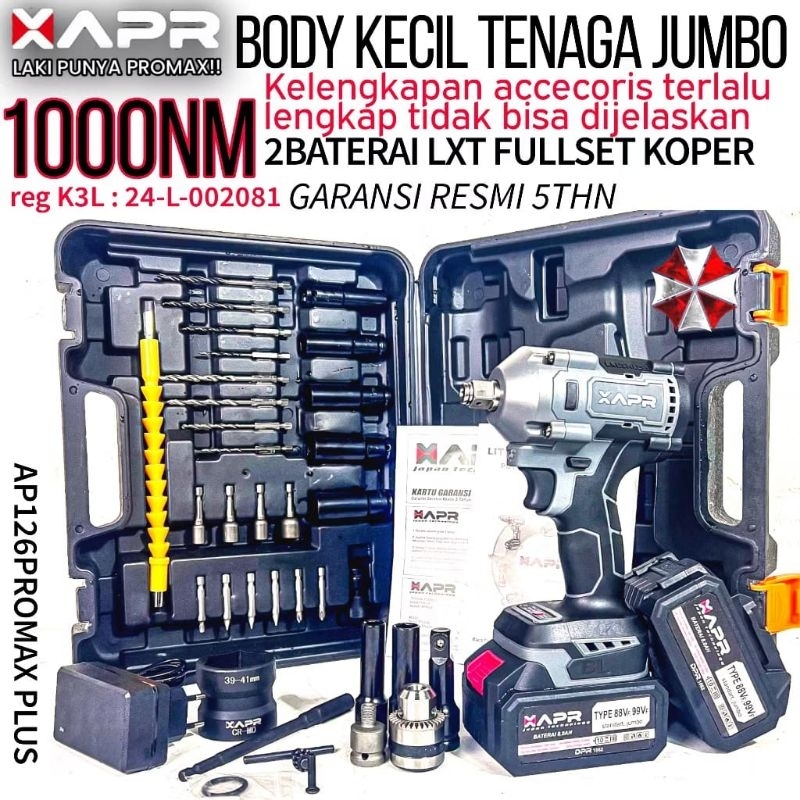 APR BOR IMPACT WRECH AP126PROMAX+ 1000NM TENAGA JUMBO FULLSET KOPER DUA BATRAI PEMBUKA BAUT DAN MOBIL