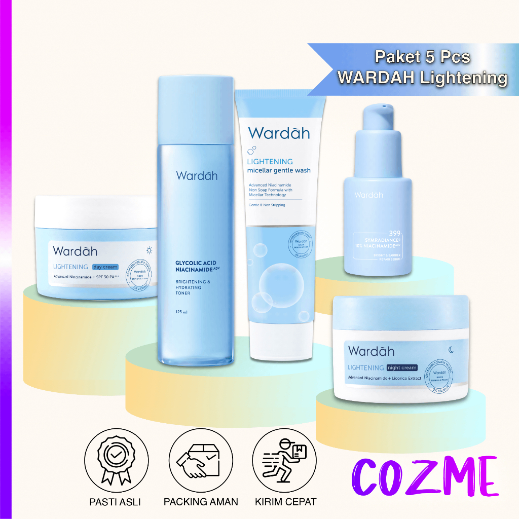 Wardah Official Store | WARDAH Paket Lightening Series Micellar Gentle Wash Symradiance Serum Brightening Toner | Day C