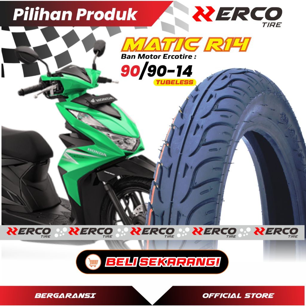ERCO TIRE Satu Set Ban Motor Matic ERCO Tubeless NonTubeless, 90/90-14 dan 80/90-14