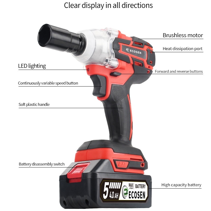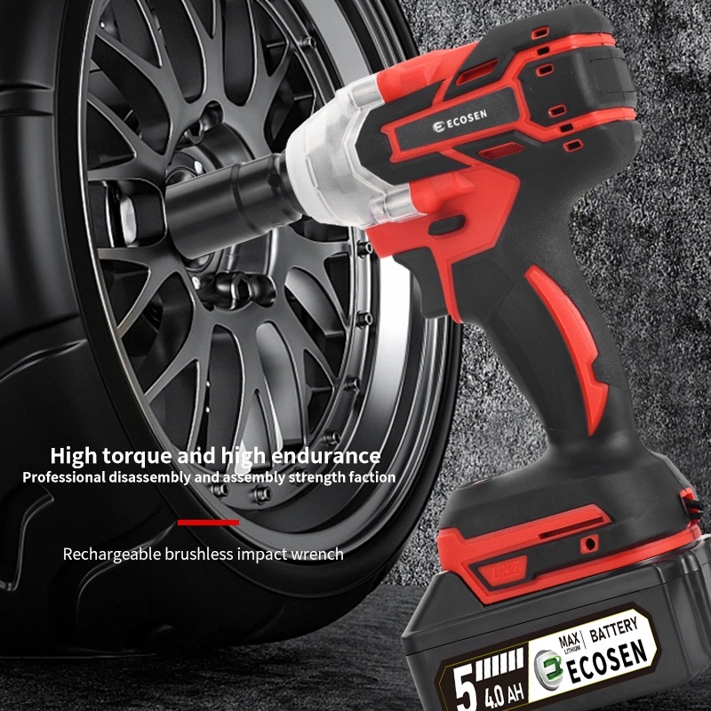 ECOSEN Impact Wrench 399V Impact Baterai Brushless 420N.M Electric Impact Wrench Spanner Sets