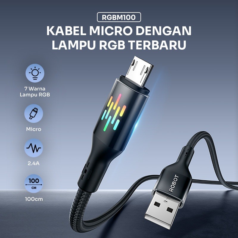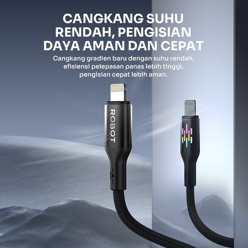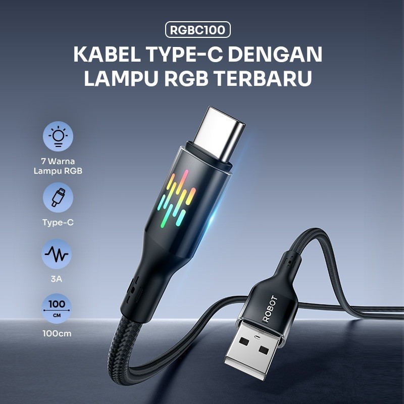ROBOT Kabel Data Fast Charging 65W 100-120cm Dilengkapi RGB Lamp Type C RGBCC120/RGBCL120 Original - Garansi 1 Tahun