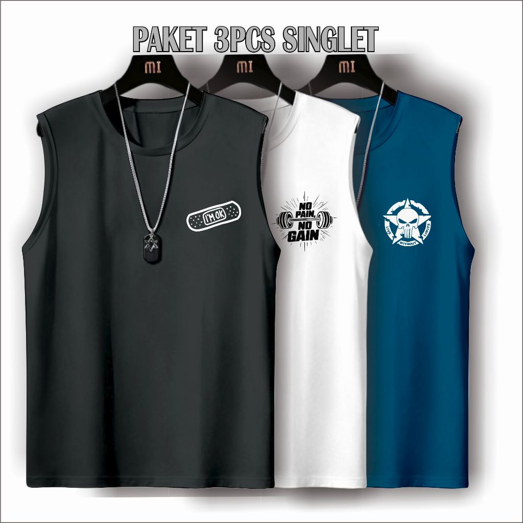 Paket Kaos Singlet Lekbong Pria Dewasa Isi 3pcs / Kaos Dalaman Cowok Trendy