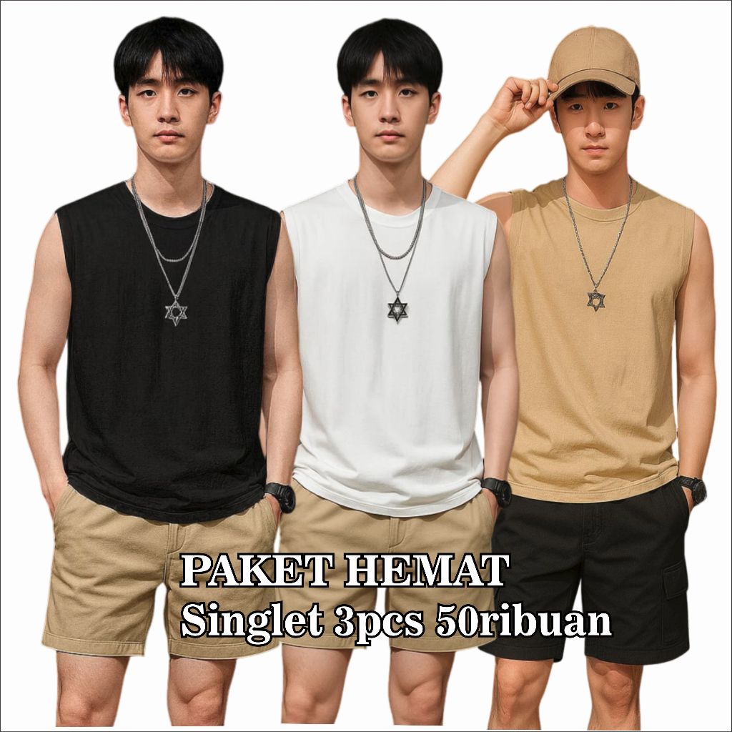 PAKET HEMAT Kaos Singlet Lekbong Pria 3pcs 50 Ribuan Kaos Dalam Cowok Polos Kaos Tanktop Pria Bahan Polos Cocok untuk Ke