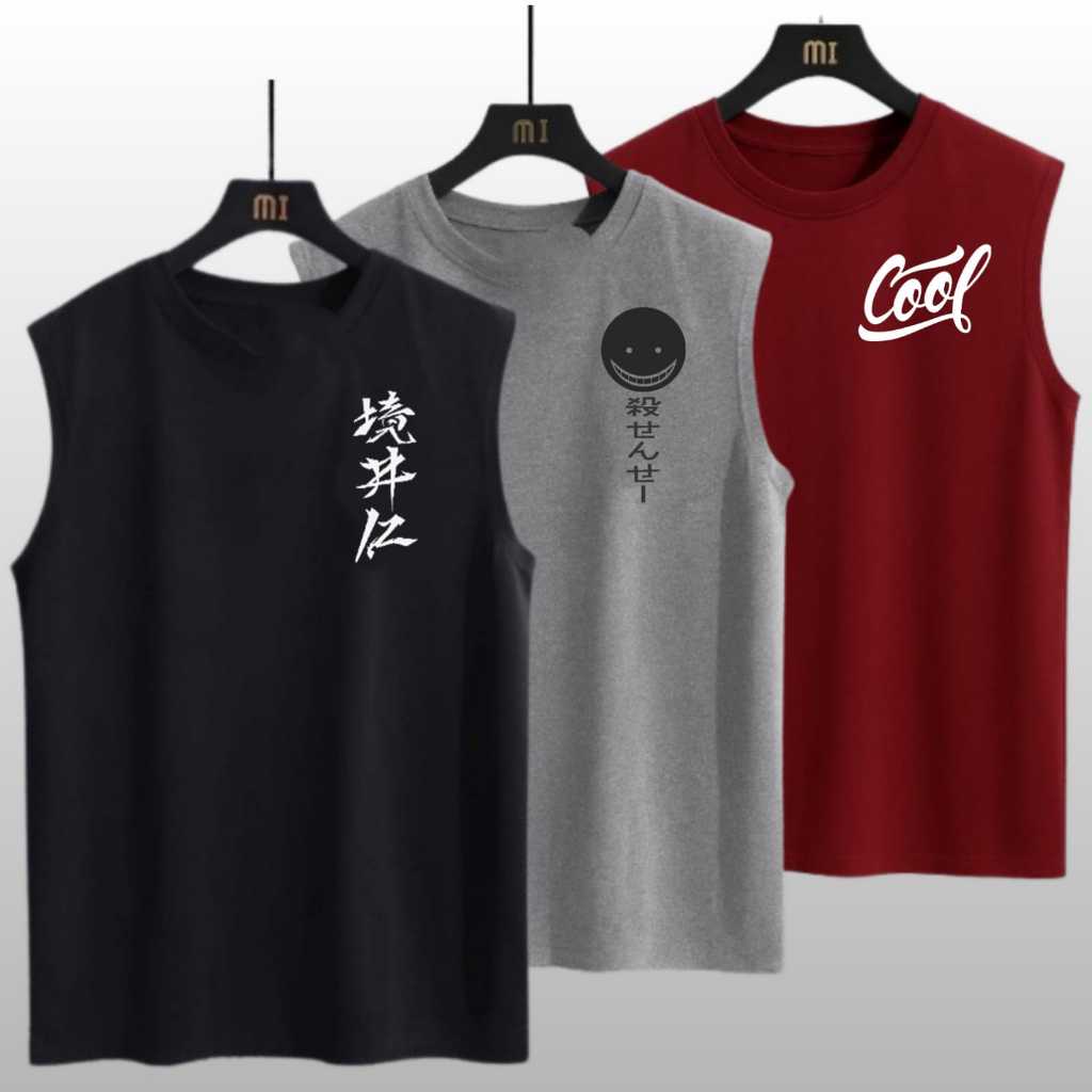 Paket Hemat 3 Pcs Kaos Singlet Lekbong Distro / Kaos Singet Pria ( 3 Motif )