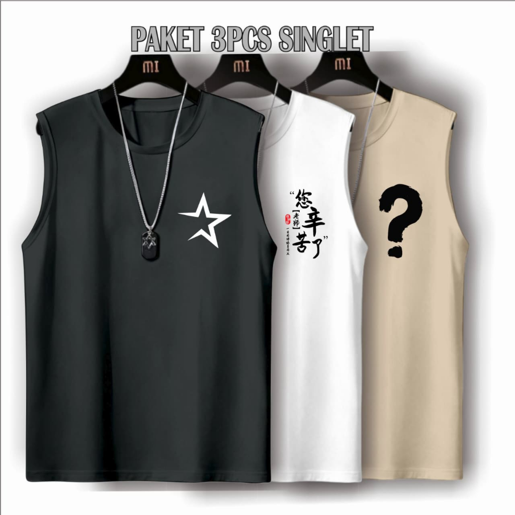Singlet Lekbong Unisex Paketan 3 pcs CUMA 50ribu Singlet Santai Gym / Paketan Singlet Simple