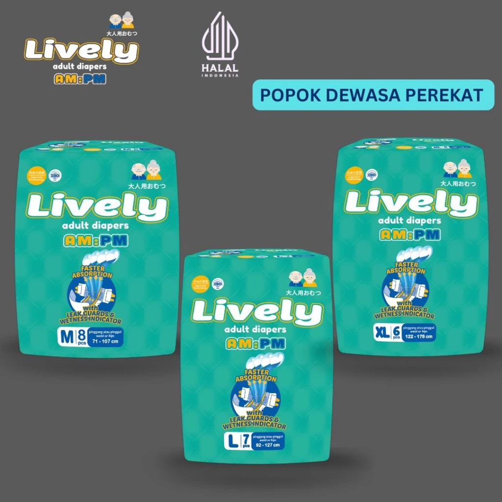 LIVELY Popok Dewasa Tipe Perekat Siang Malam M8 L7 XL6 - Adult Diapers Tape AM PM