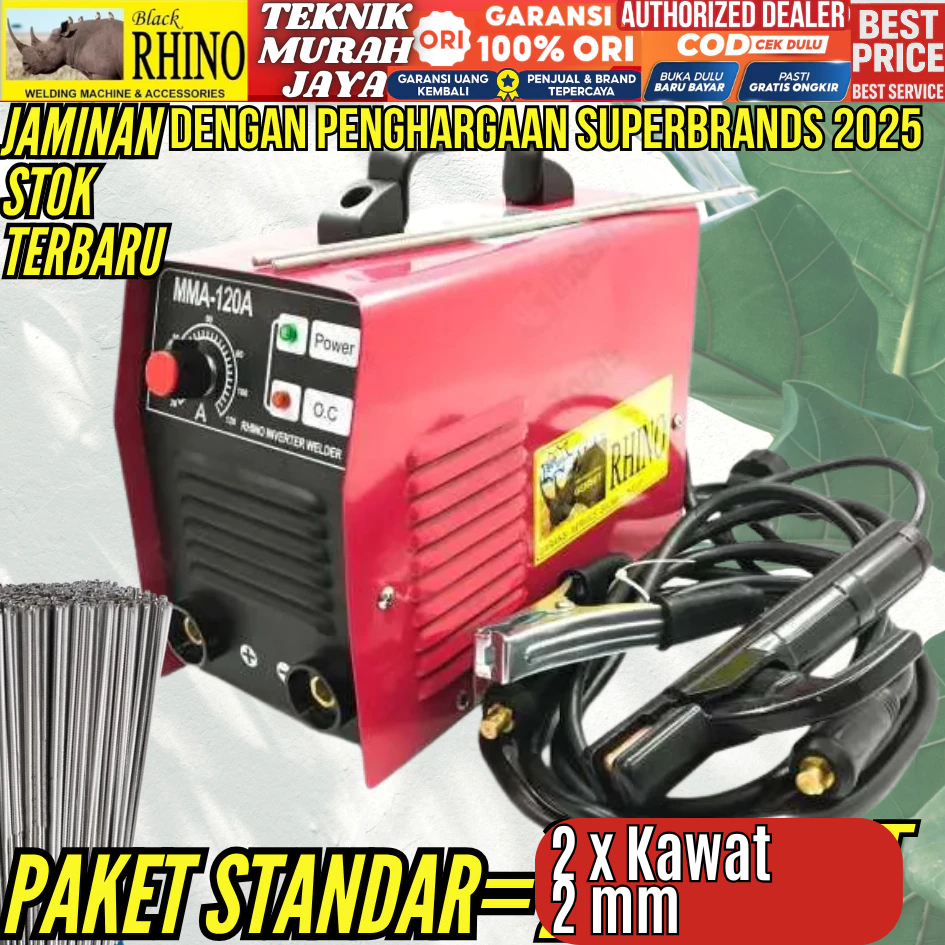 RHINO Mesin Las MMA 120A MERAH 900 Watt Mesin Trafo Travo Las Inverter MMA 120 A 450 Watt Biru Eco