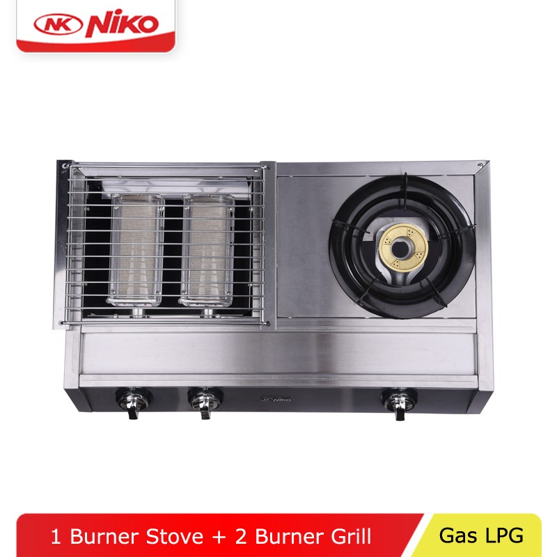 Kompor Gas Grill 2in1 NIKO GRS21 / kompor gas + panggang 2 tungku / kompor 2 in 1 kompor bakaran