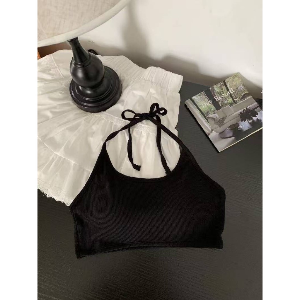 Miss Tank Top Halter Wanita Sexy Baru dengan Bra Pad, Gaya Liburan Manis & Seksi, Atasan Dalaman