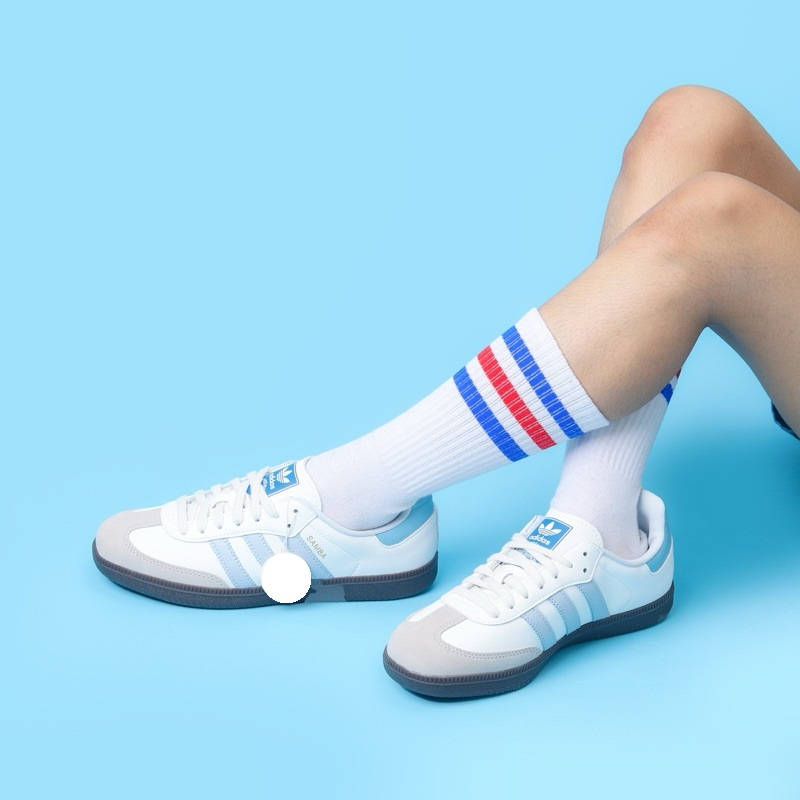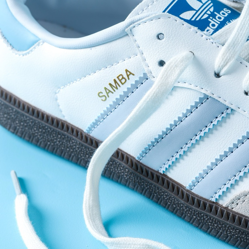 [Mall]Sepatu Adidas Samba OG Classic Core White Blue Gum White Halo Blu Sneakers Pria Wanita Original BNIB - Original NB