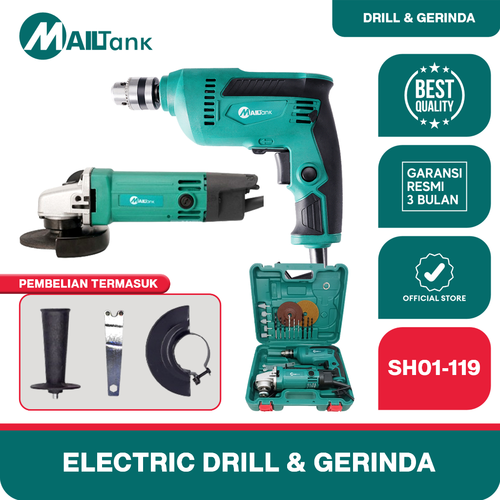 MAILTANK SH01-119 Set 4 Inch Angel Gerinda Angel Electric 13mm Drill Dan Set Mata Bor