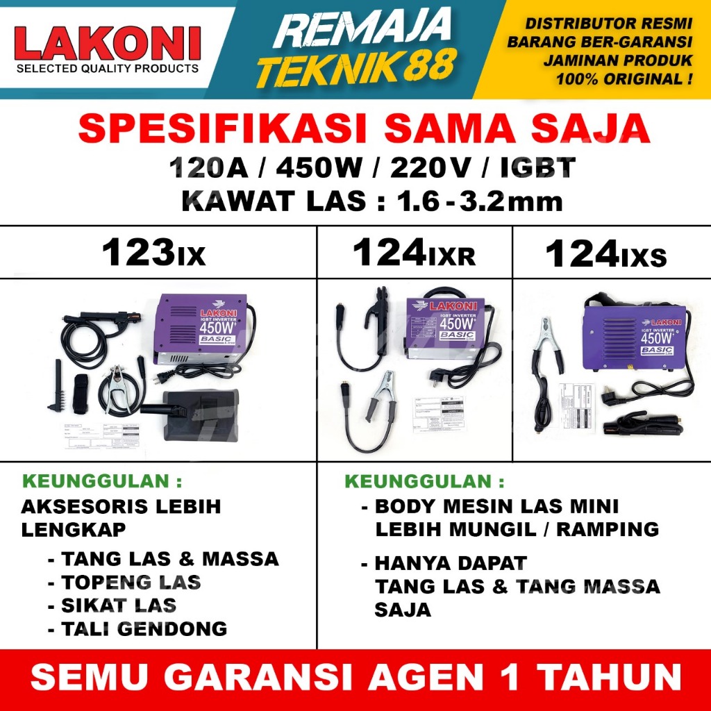 LAKONI BASIC 123 IX / 123IX / TRAVOLAS MESIN LAS LAKONI BASIC 123 450 WATT / TRAVOLAS PORTABLE MURAH