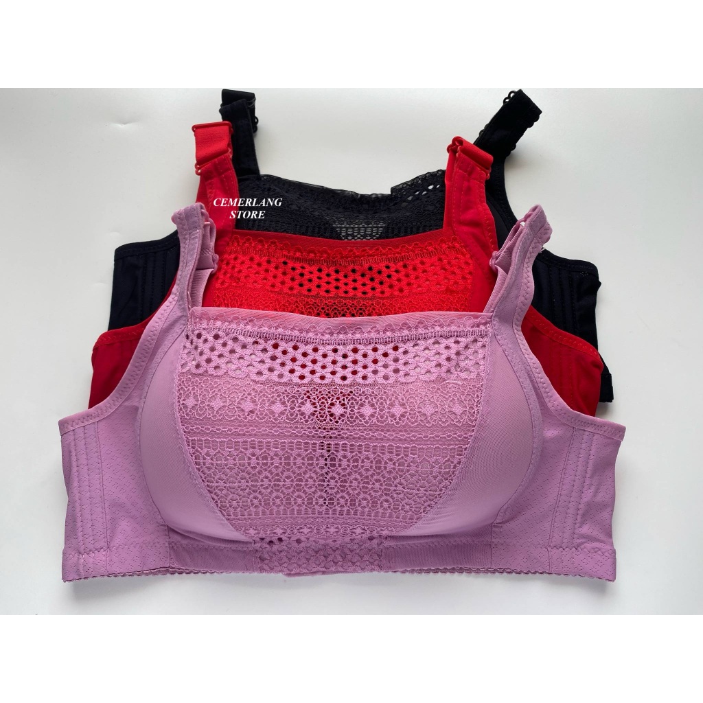 3 PCS BH BRA Kemben Busa Tanpa Kawat Cup Besar Renda Jaring Cantik Kait 4 | Size 36 38 40 42 44 46