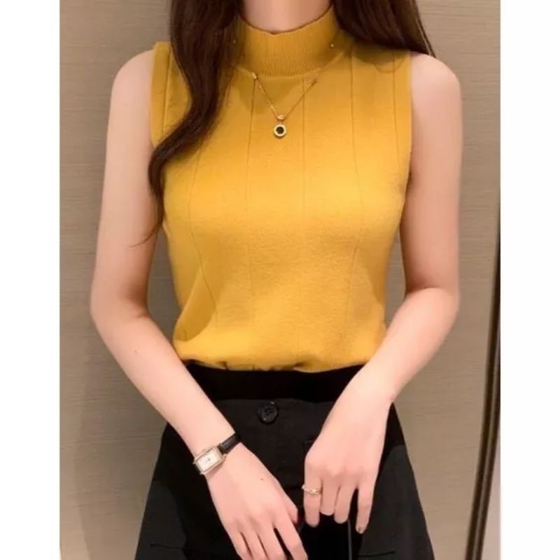 tunlenck wanita tengtop Rajut Amanda garis tengtop blues Korean lekbong spandek terbaru