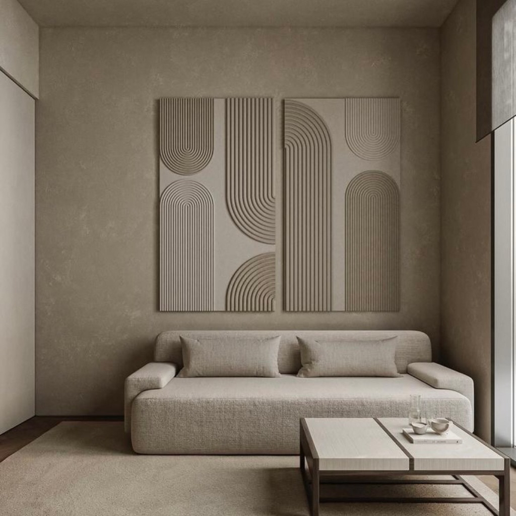 Lukisan Panel 3D Timbul Couple 2pcs Minimalis Modern | Hiasan Dinding Warna Netral Elegan Gaya Japandi & Scandinavian