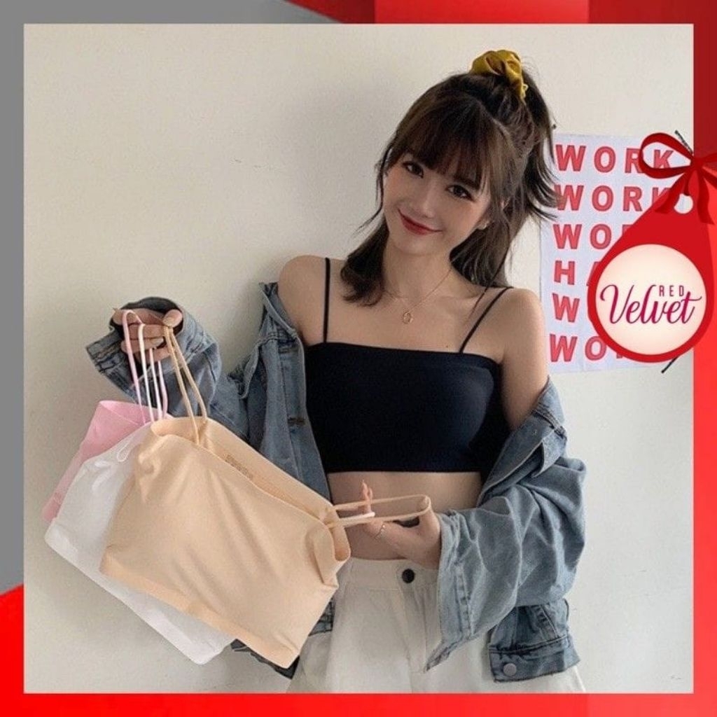 Tube Top Wanita Kemben Tali Polos Korean Style Crop Top Tank Top Pendek Atasan Wanita Sexy