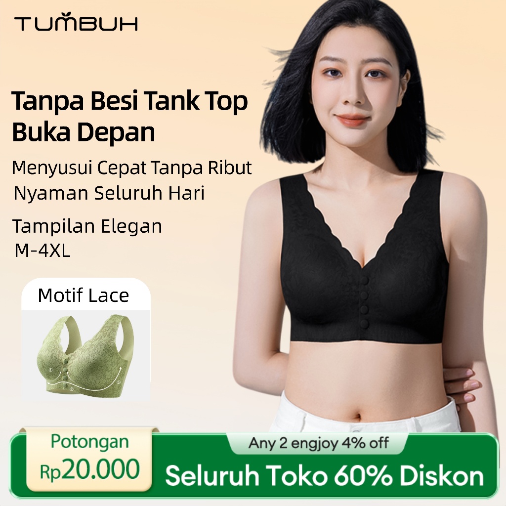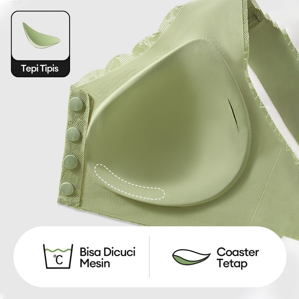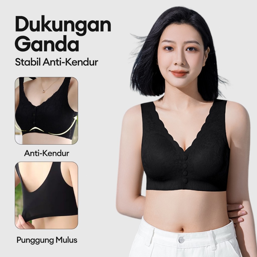 Bra Menyusui Ibu Tanpa Kawat dengan Kancing Depan dan Rompi Renda - Pakaian Dalam Wanita Push Up dengan Busa BR01
