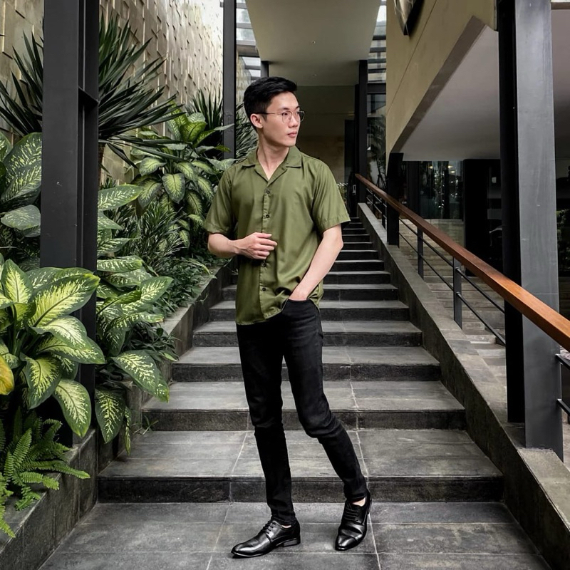 kemeja Smilesky Kemeja V Neck Pria Lengan Pendek Polos - Cotton Toyobo Adem Halus Ukuran M L XL