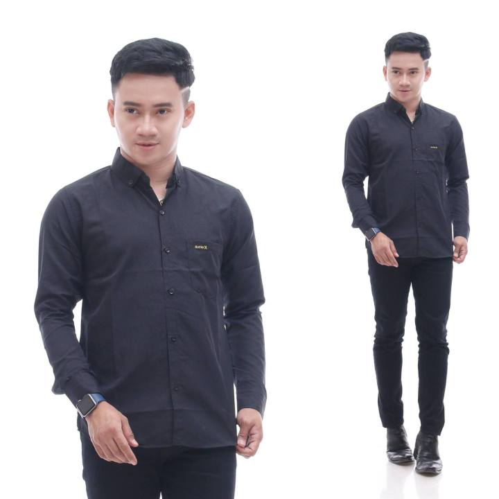 kemeja Kemeja Polos Hitam Mewah Pria Kasual Dan Kerja Lengan Panjang Ukuran M L XL