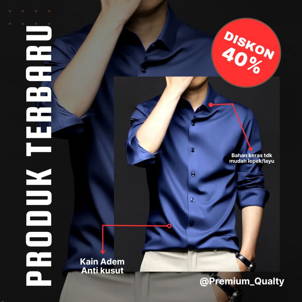 kemeja Kemeja polos kemeja Hem warna hitam + maroon + putih dan navy anti kusut bahan toyobo premium 100% tebal halus ad