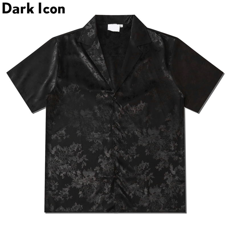 kemeja Dark Icon Kemeja Hitam Satin Pria Lengan Pendek Vintage Kemeja Cowok Oversize Shirt Men Putih