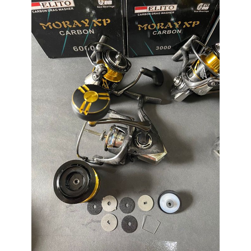 Reel Elito Moray XP Body Full Carbon,drag washer carbon tex,real Sw ball bearings 8+1bb,full rubber seal all side,size 1