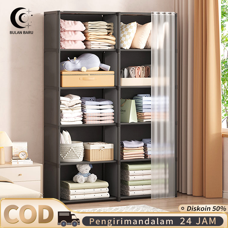 ⭐ ⭐ Lemari Pakaian Sederhana Storage Rack Wardrobe Anti Serangga Dan Tahan Debu Multifungsi Penutup Tirai Gorden Anti K