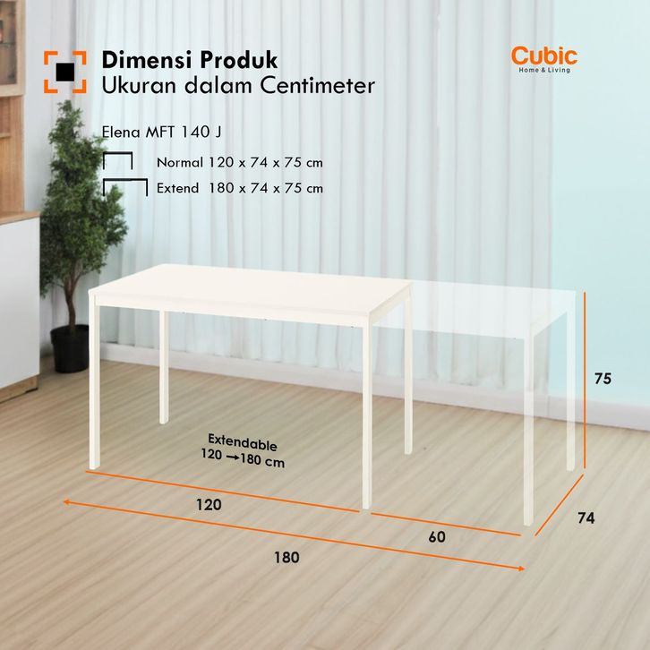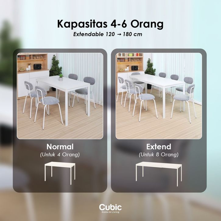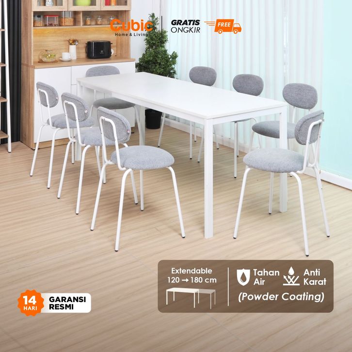 Cubic Meja Makan Extendable Minimalis / Dining Set 4-8 Kursi Dapur - ELENA MFT 140
