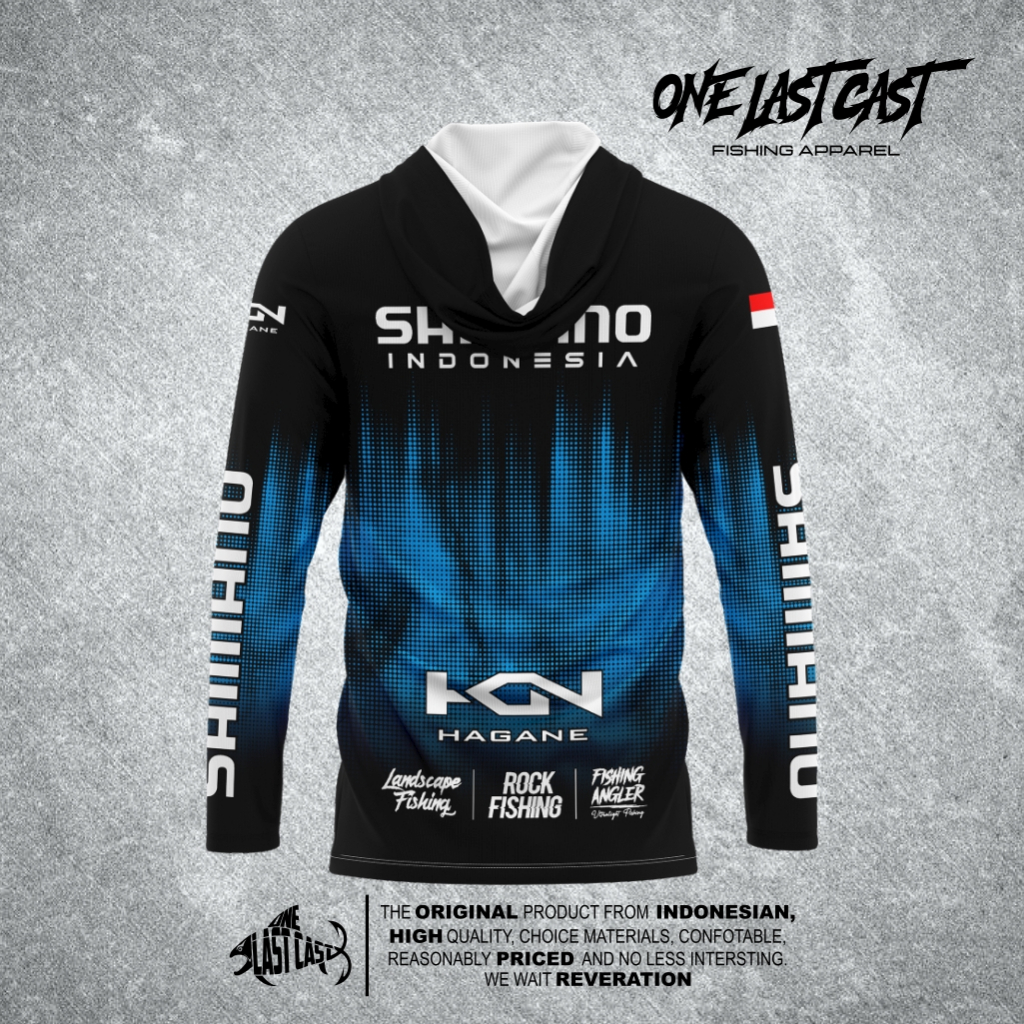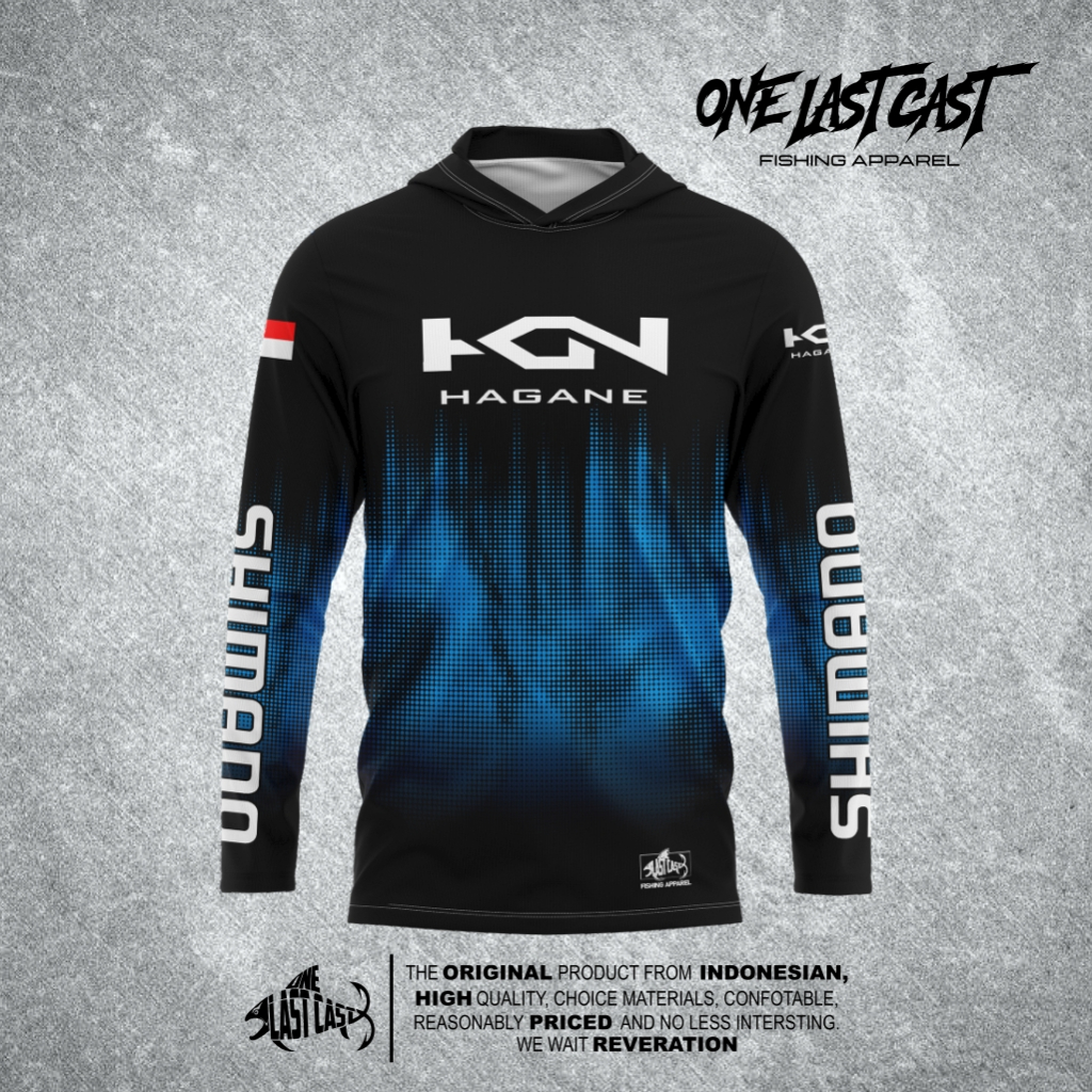 Onelastcast Jersey Mancing Black Blue SHIMANO Kgn HAGANE Model Kupluk Full Print