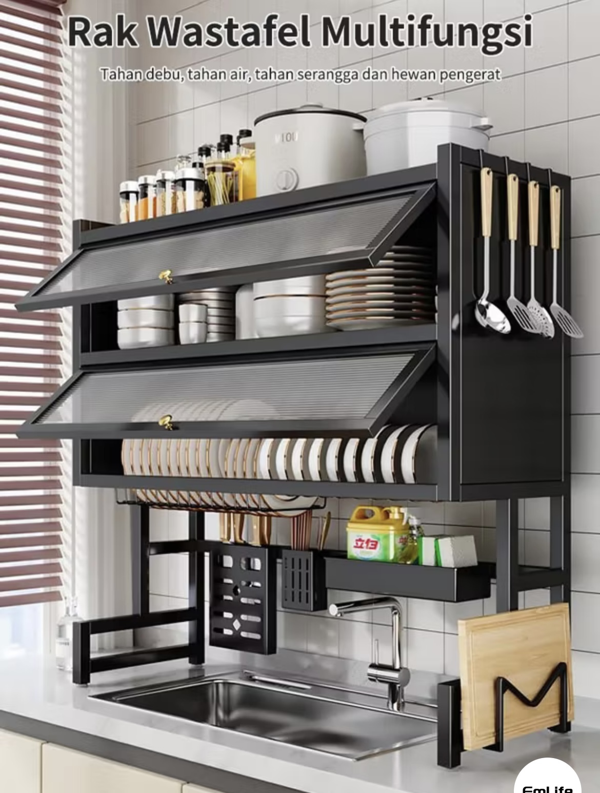 2 Susun Rak Piring Wastafel Dengan Kabinet Rak Wastafel Cuci Piring Rak Piring Stainless Steel Rak Dapur Multifungsi