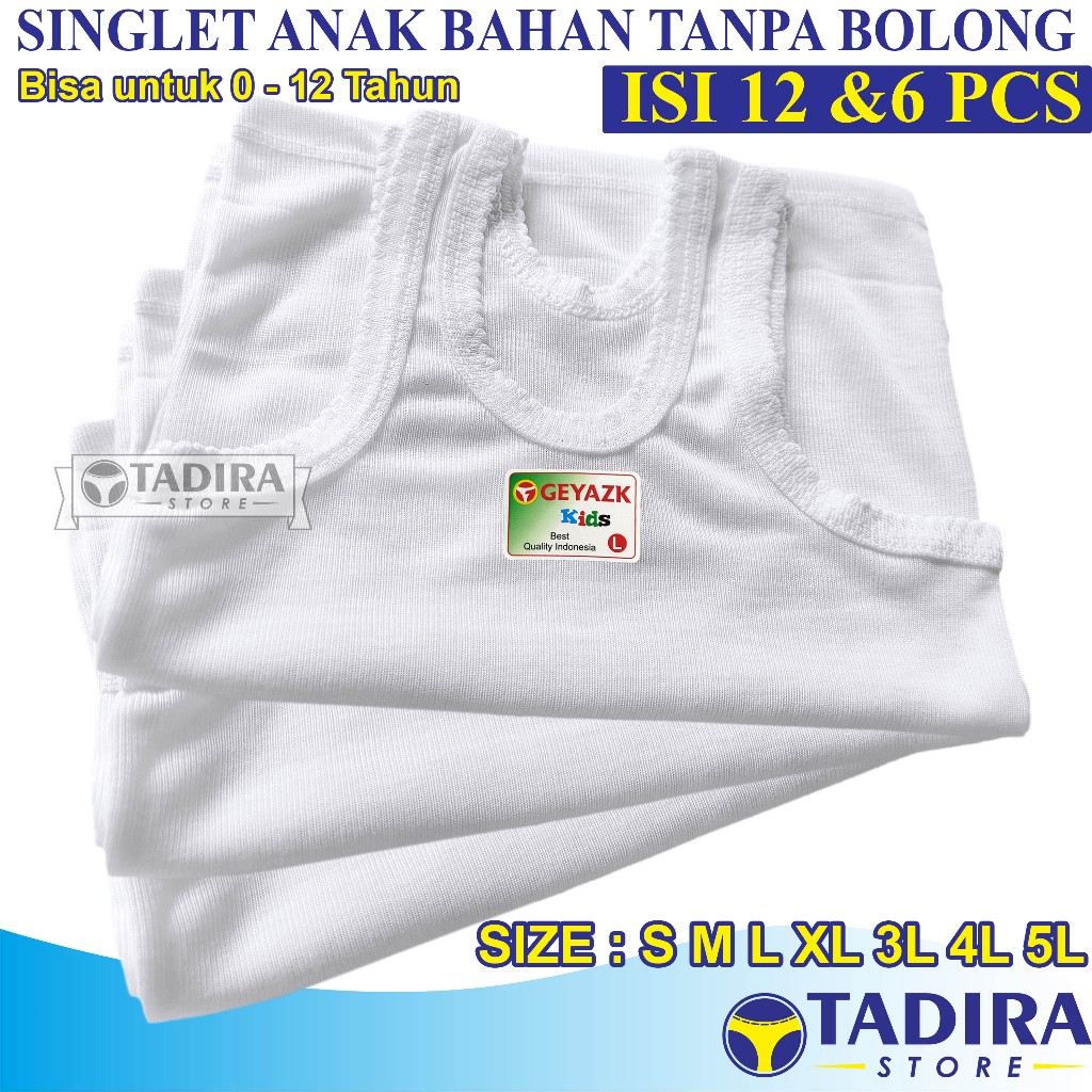6 Pcs Singlet Anak Putih Tanpa Bolong Bolong Kaos Dalam Anak Laki Dan Perempuan TADIRA Store