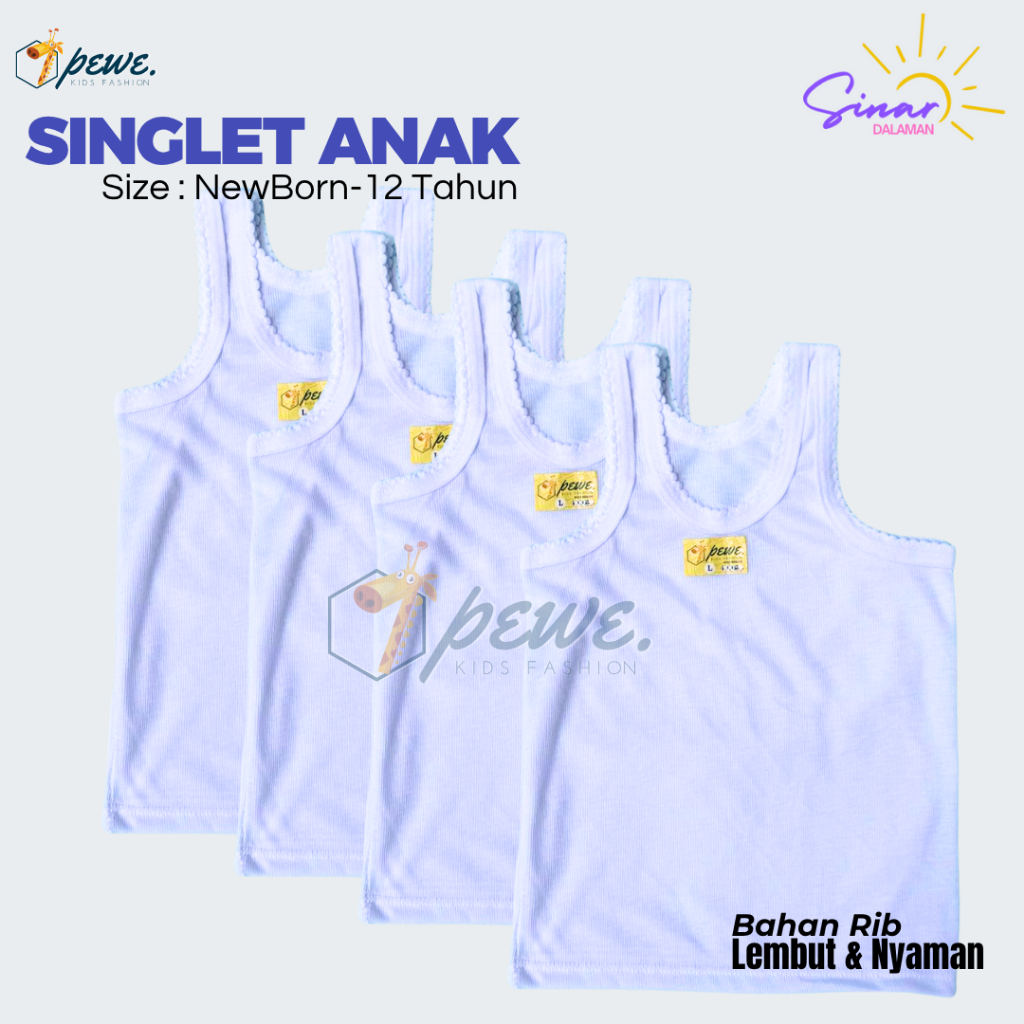 1 Lusin Kaos Dalam Anak Singlet Anak Perempuan dan Laki-Laki / Kaos Dalam Anak Singlet - Kaos Dalam Anak Singlet Putih K