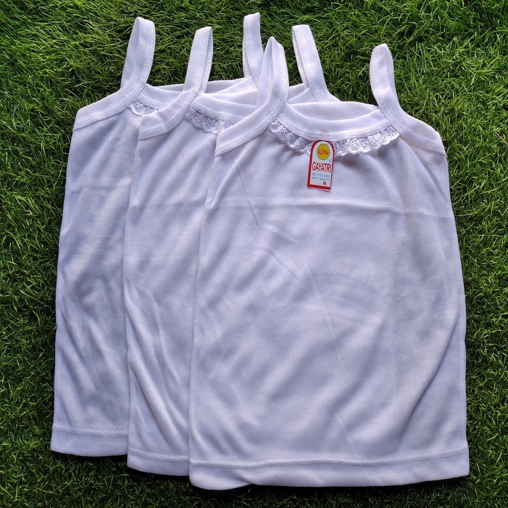 isi 12 Pcs Kaos Singlet Anak Perempuan Remaja Putih Renda