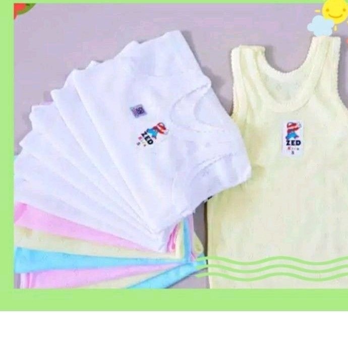 6pcs KAOS KUTANG ANAK LAKI2 & PEREMPUAN MEREK ZED KIDS SNI/Kaos dalam anak motif berpori zed kids