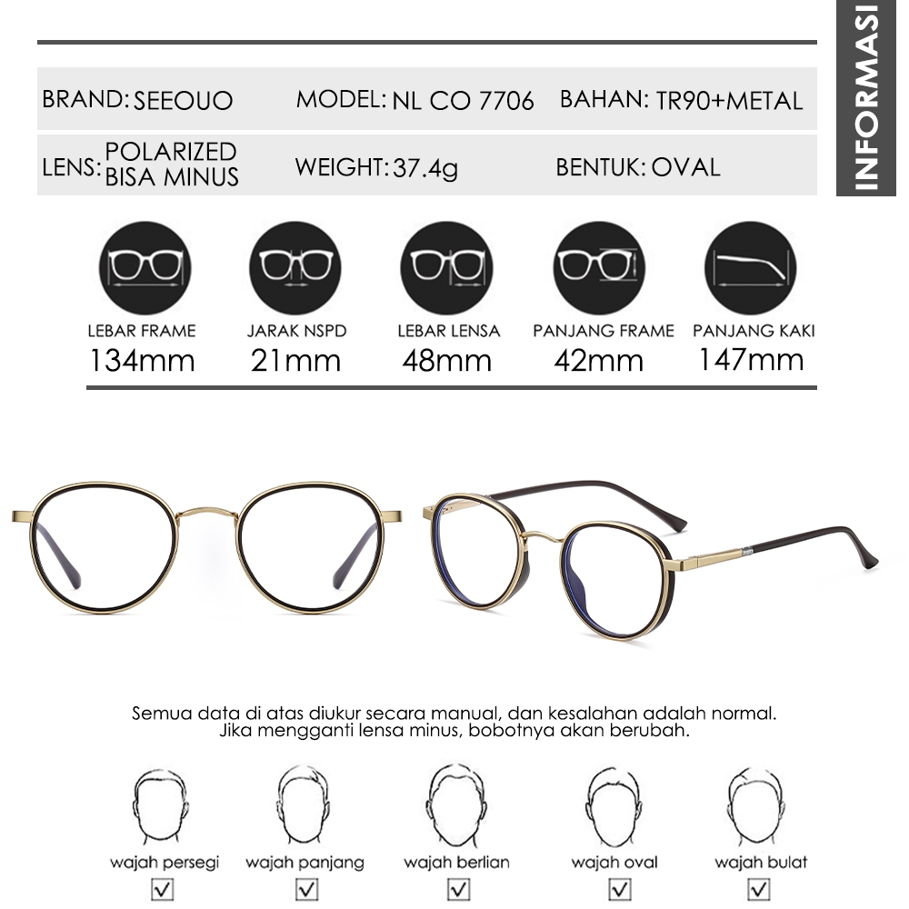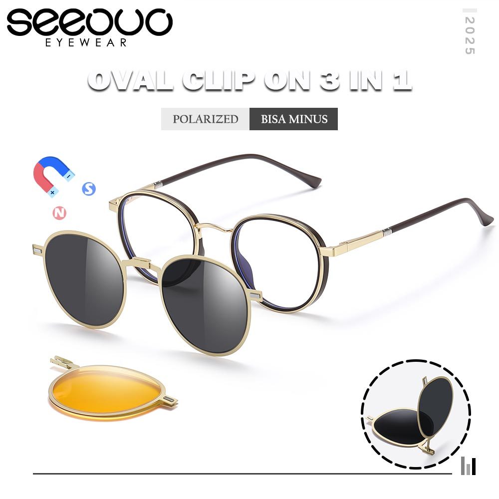 Seeouo Kacamata Clip On 3in1 Model Oval Bulat Polarized Night Vision Clip Anti Silau UV Protection Magnetic Metal Kokoh